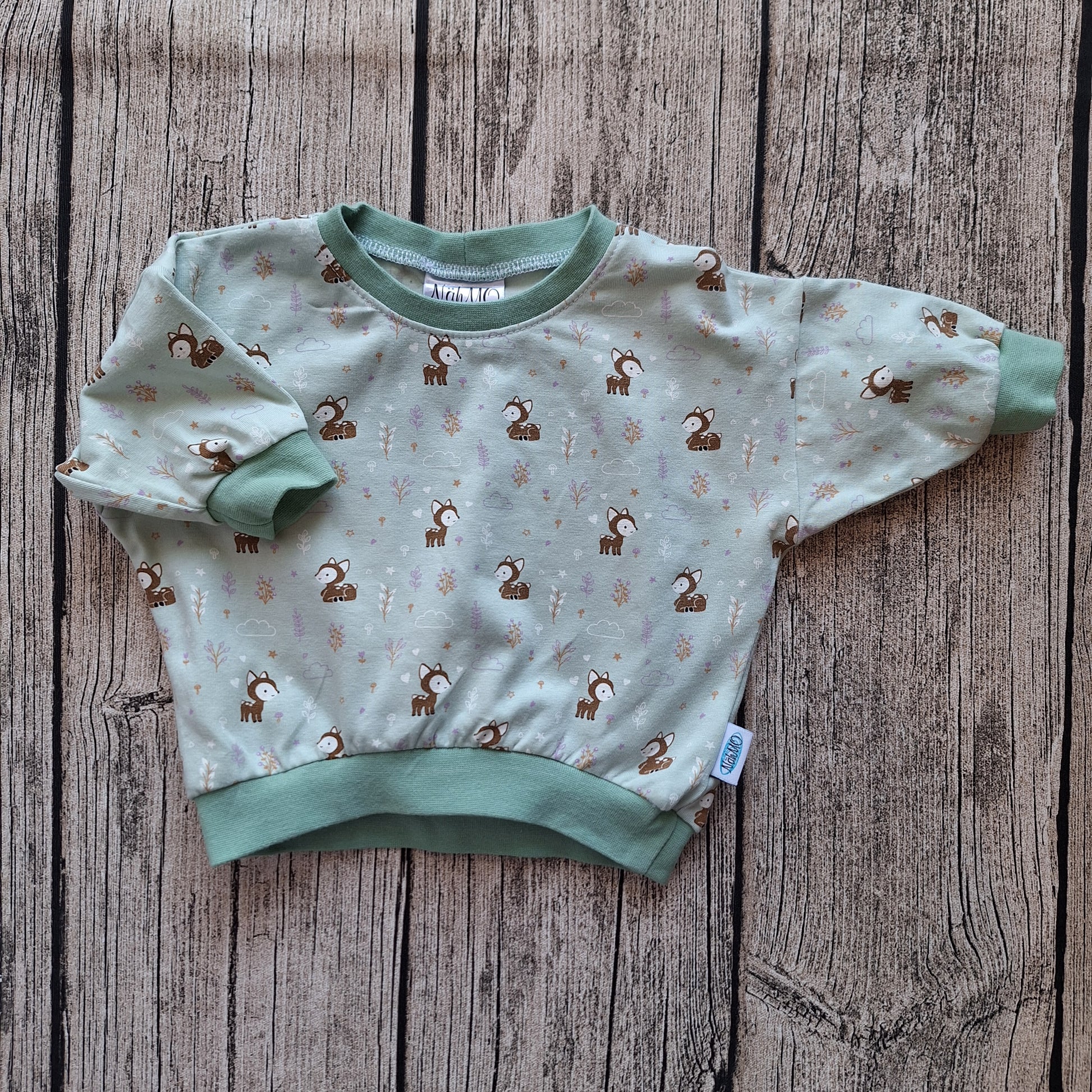 Dieser Oversized Sweater in heller Mintfarbe ist ein echter Hingucker für die Kleinsten. Der süße Allover-Print mit kleinen Rehen verleiht dem Pullover einen natürlichen, sanften Look – ideal für kleine Waldfans und Kuschelzeit-Liebhaber*innen. 🍃💚
