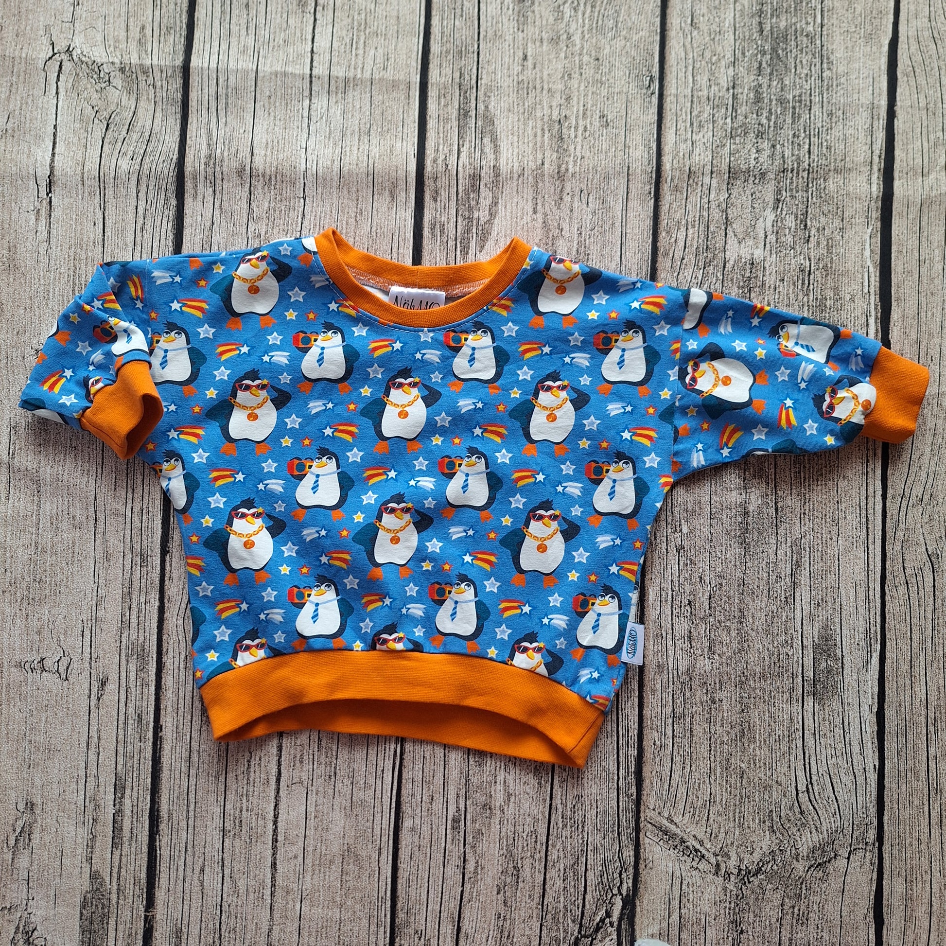 Dieser oversized Sweater bringt nicht nur kuscheligen Komfort, sondern auch richtig gute Laune ins Outfit deines Babys! Bedruckt mit frechen Pinguinen, die Sonnenbrillen tragen 😎🐧, ist er ein echter Hingucker – verspielt, witzig und einfach nur cool. Der lockere Schnitt sorgt für bequemen Sitz und genügend Bewegungsfreiheit zum Strampeln, Krabbeln und Weltentdecken 🌍👶.